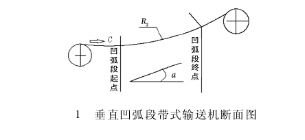 皮帶輸送機是目前輸送散狀物料方面應用最普遍的輸送機械,在燃煤電廠、水泥廠的輸送系統中更是如此。一般燃煤電廠、水泥廠的帶式輸送機雖然每一區段均較短,但由于受廠內建筑物的座標、標高和皮帶輸送機輸送角度的限制,以及為降低輸送機頭部滾筒的高度等因素,有時必須將輸送機的某一適當區段設計為凹弧形或凸弧形的曲線段。