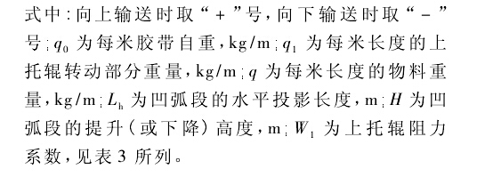 平穩運行。實際的設計計算表明,對于一般的皮帶輸送機凹弧段半徑的計算,式( 1) 的計算結果可滿足要求。但在某些條件下,式( 2) 、( 3) 的計算結果也會大于式( 1) 的所得,從而導致半徑過大給工藝布置帶來一定的困難。查式( 2) 、( 3) ,可采取加大拉緊力的方法以增大Tc值,使其計算結果得到減小。下面將討論凹弧段起始點張力Tc的計算方法。