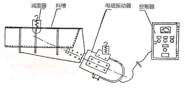 電磁振動給料機的激振器電磁線圈的電流是經過單相半波整流的,當線圈接通后在正半周內有電流通過,銜鐵和鐵芯之間便產生了脈沖電磁力互相吸引,這時槽體向后運動,激振器的主彈簧發生變形儲存了一定的勢能,在負半周線圈中無電流通過,電磁力消失,主彈簧釋放能量,使銜鐵和鐵芯朝反方向離槽體向前運動。于是電磁振動給料機以交流電源的頻率往復振動,由于槽體的底平面與激振力作用線有一定的夾角,因此槽體的物料沿拋物線的軌跡連續不斷地向前運動。調整整流電壓的高低,即可控制設備的送料量。