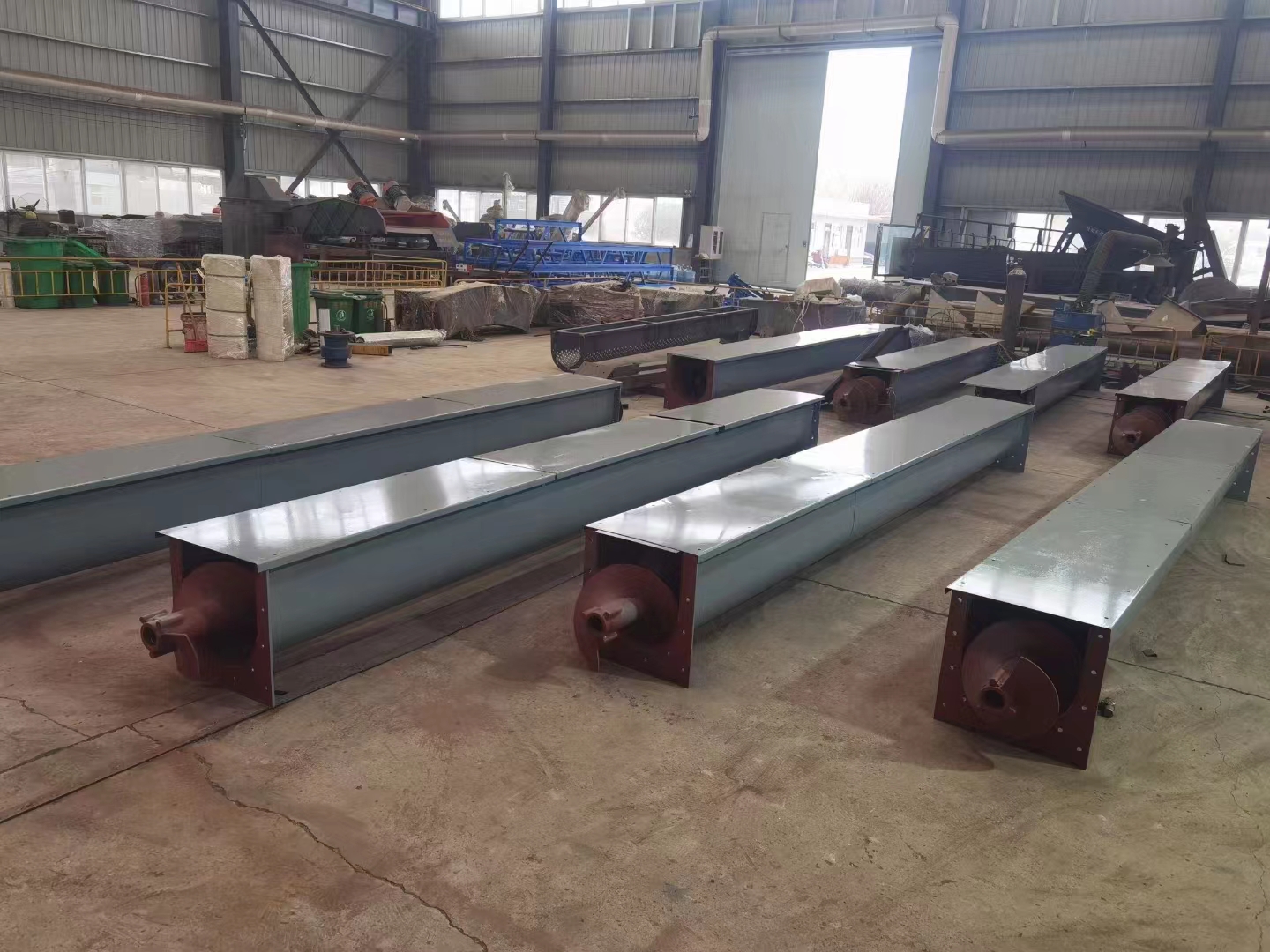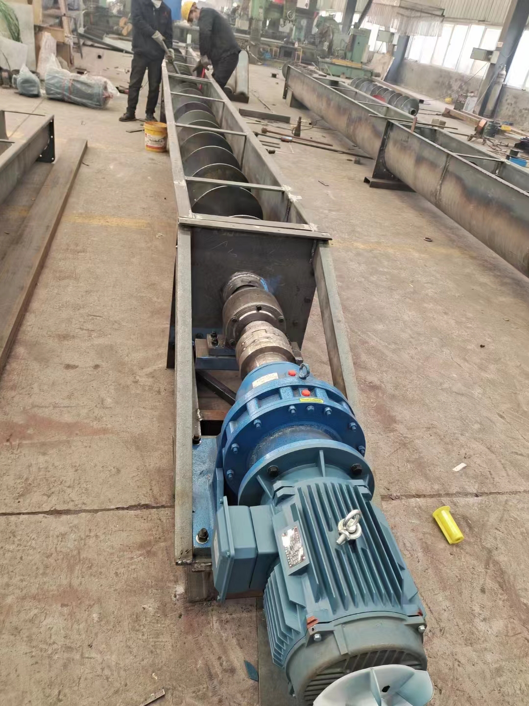 今天接到電話。洛陽一個(gè)客戶咨詢我們螺旋輸送機(jī)。客戶輸送的物料煤粉。輸送量不大。我們的技術(shù)給客戶設(shè)計(jì)了一臺U型螺旋輸送機(jī)。型號:LX250-7米螺旋輸送機(jī),客戶要求輸送距離是7米長。我們技術(shù)設(shè)計(jì)的箱體總長7.5米。輸送機(jī)箱體的板厚3mm、電機(jī)配的是4KW電機(jī)。減速機(jī)是BWD-2型。歡迎有需要的客戶來電咨詢我們。聯(lián)系電話:15560202577(同微信)